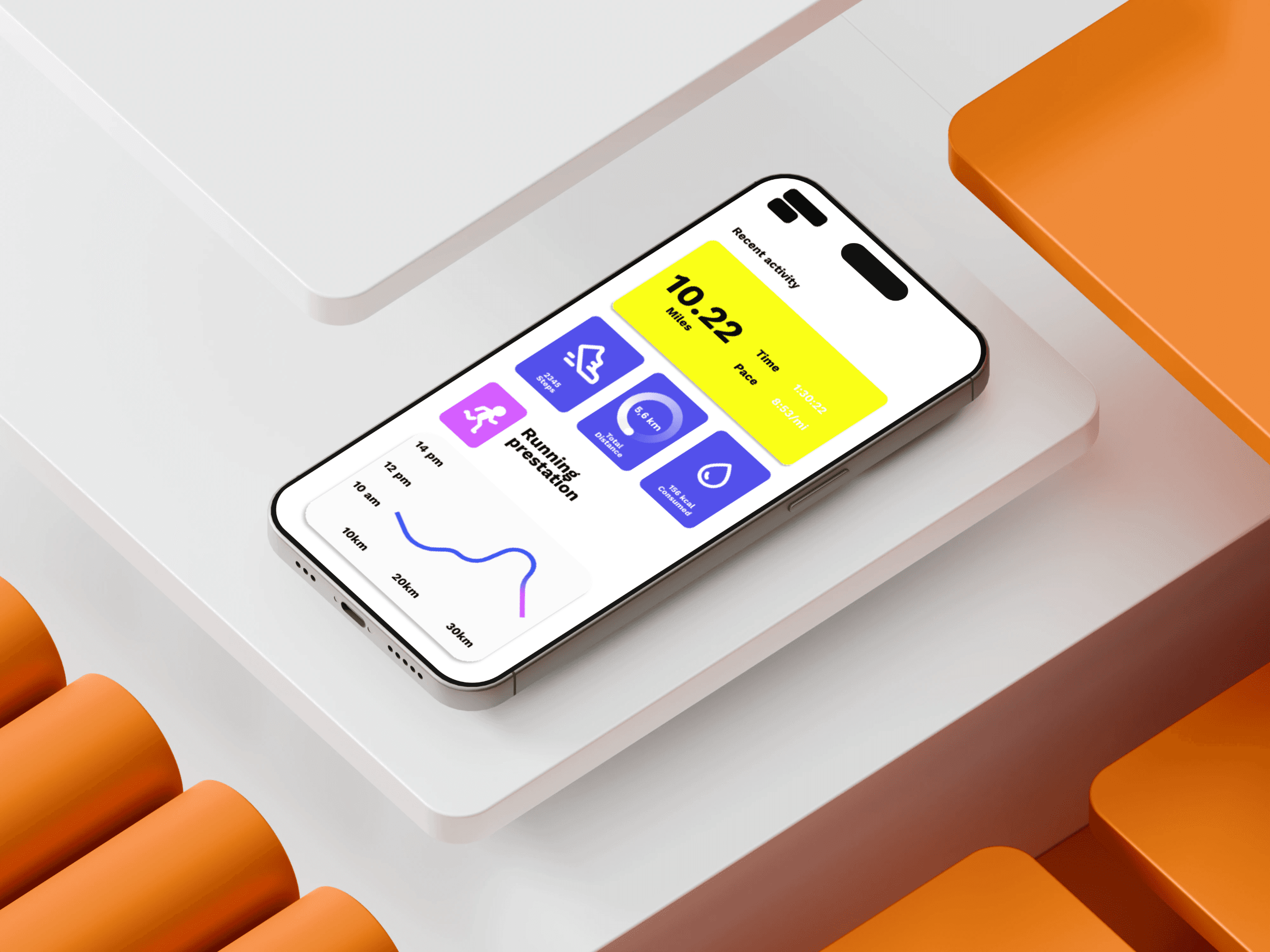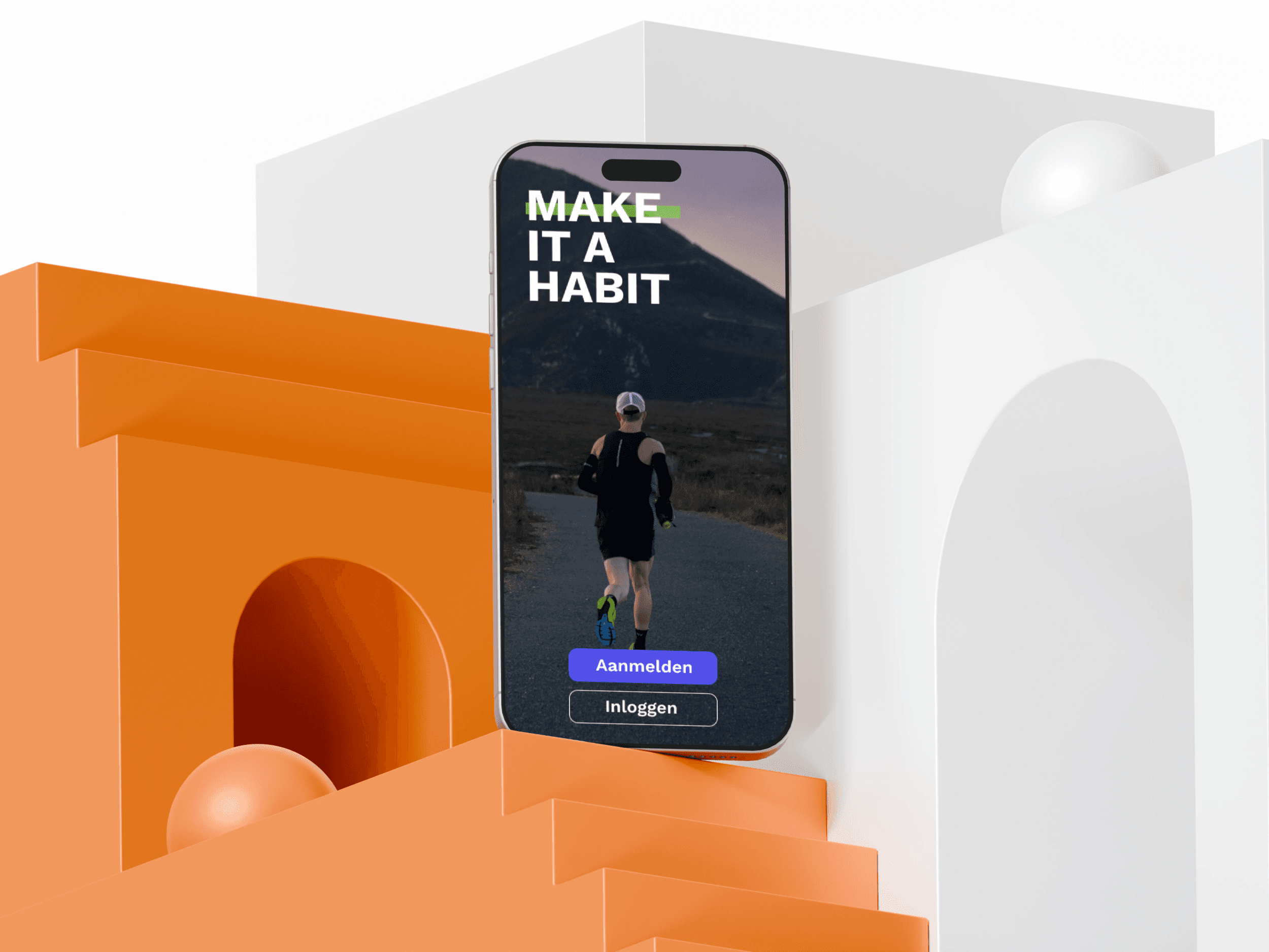 Voor dit ontwerp koos ik voor felle, sportieve kleuren en ronde rondingen om de app een energiek gevoel geven en gebruikers motiveren om te sporten.